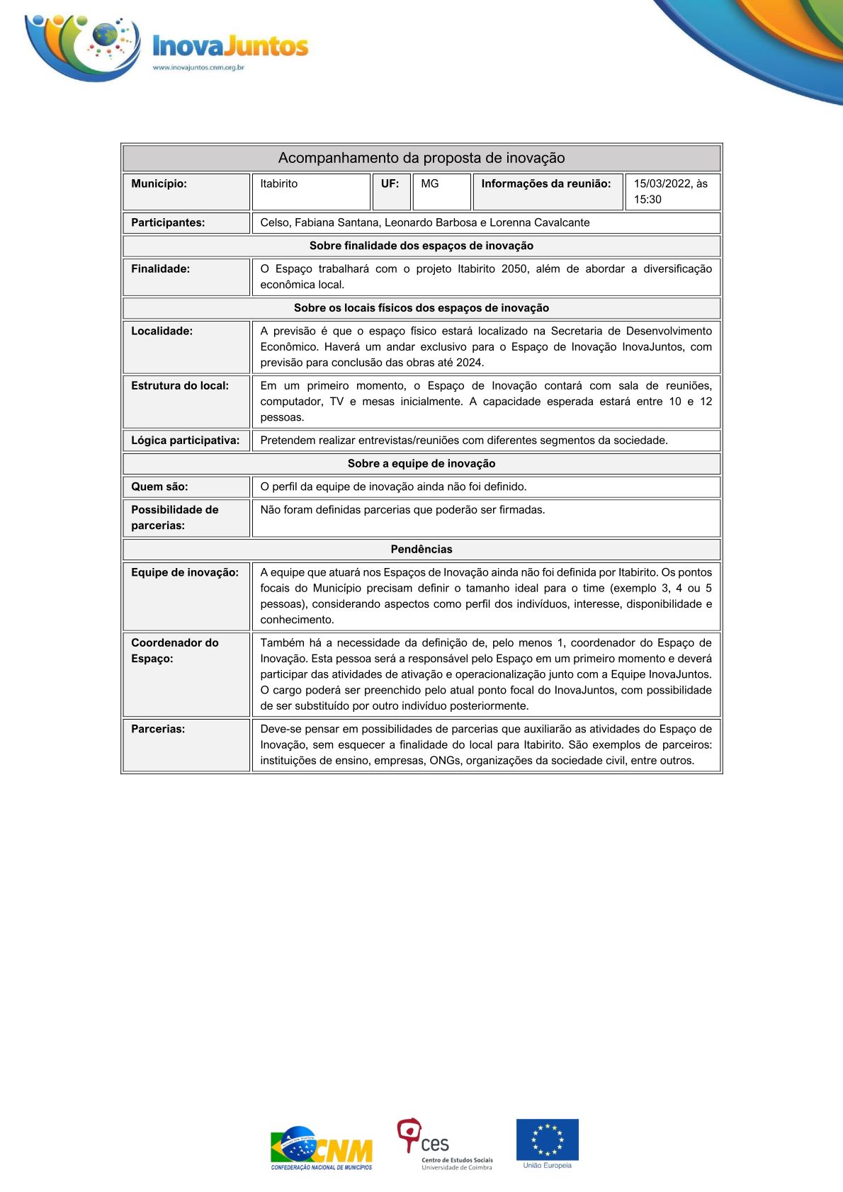 Documento: Itabirito - Relatório de Espaço de Inovação