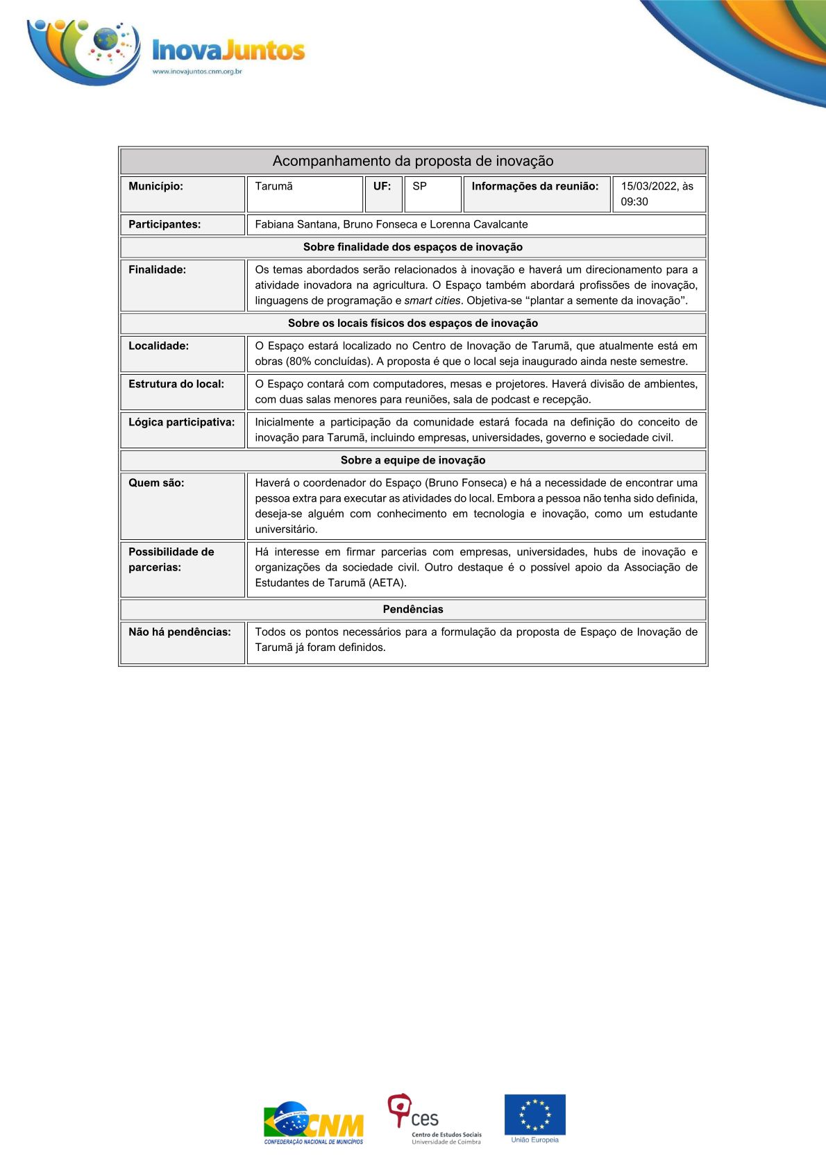 Documento: Tarumã - Relatório de Espaço de Inovação